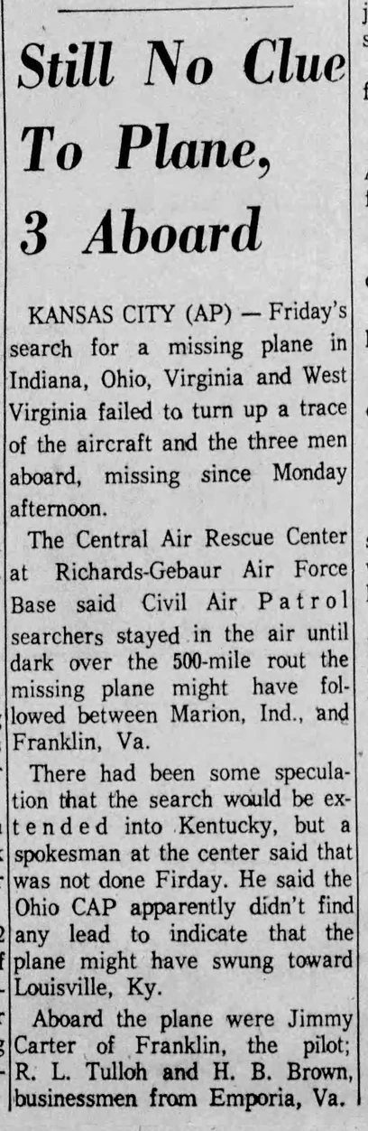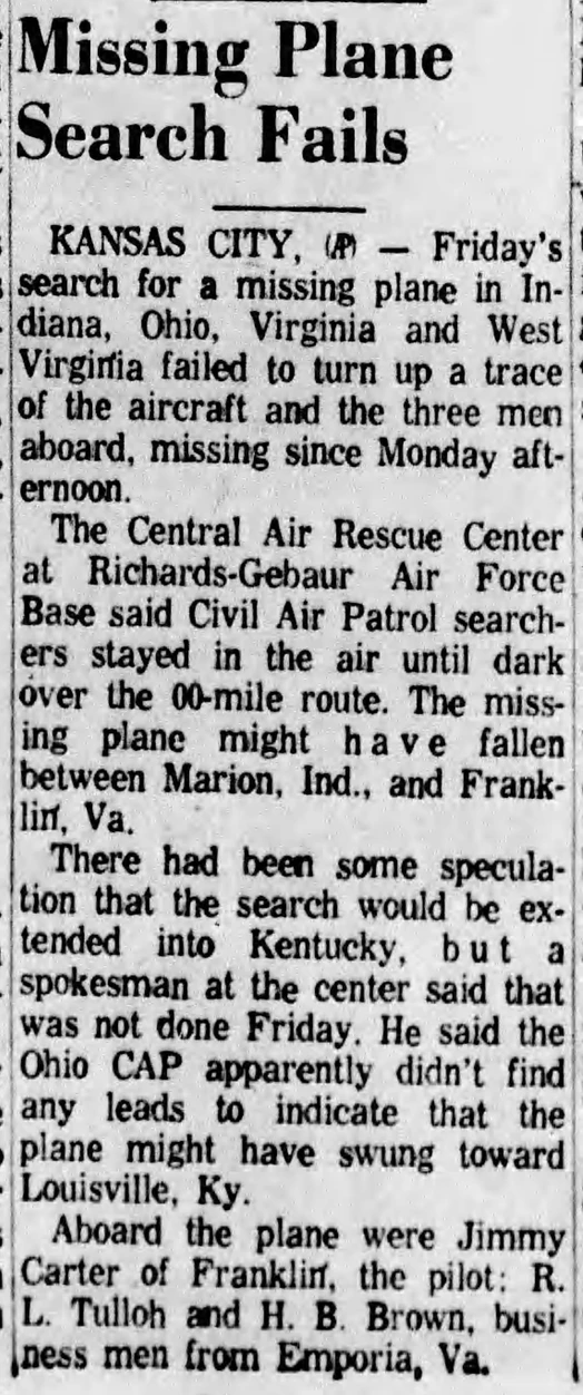 The plane was never located and appeared it never would be, despite the extensive search that took place over the course of several weeks in six different states involving over 250 aircraft.